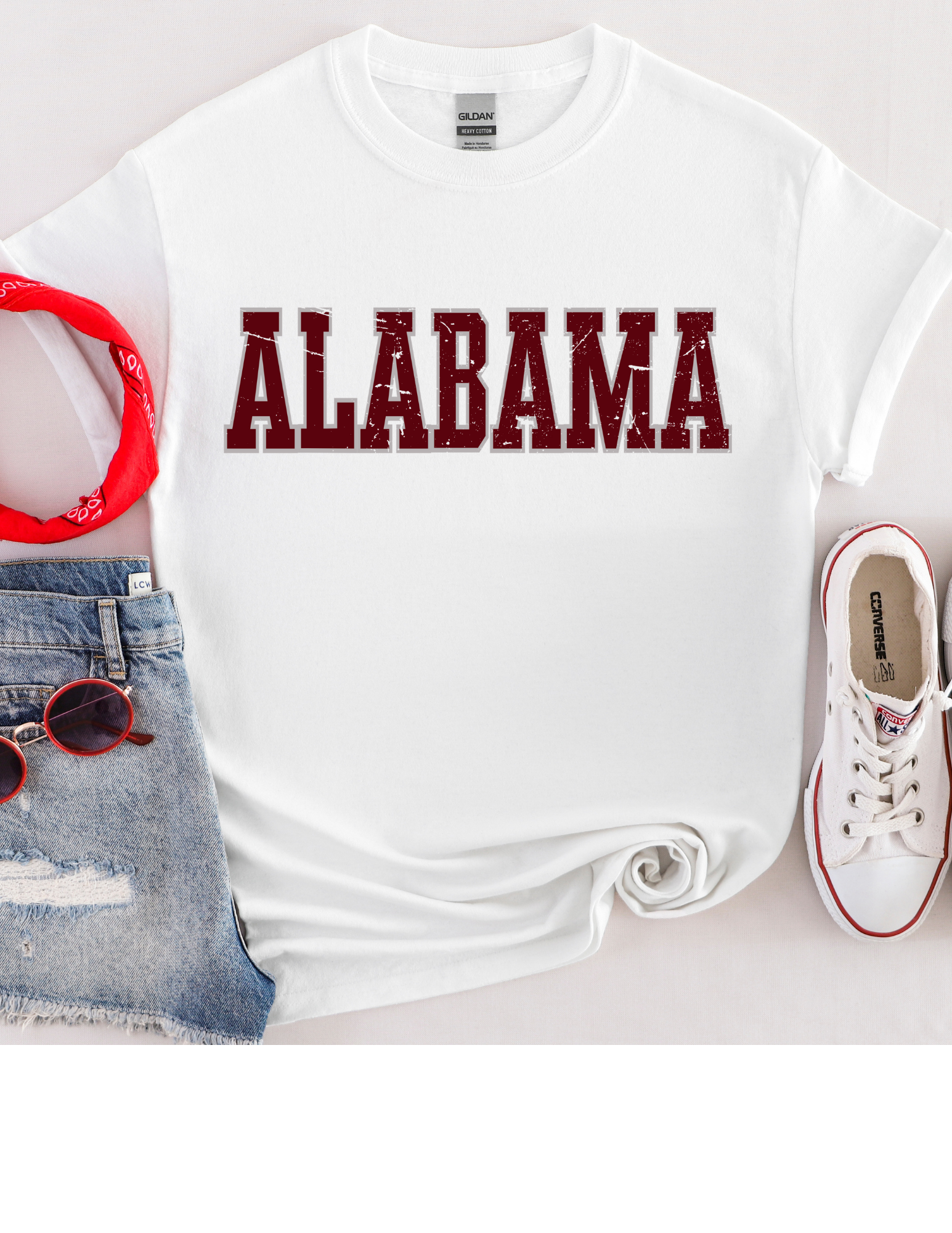 Alabama Distressed Varsity Tee | Vintage Crimson Game Day Shirt | Southern Spirit Unisex T-Shirt | Retro College Style | Game Day Gear