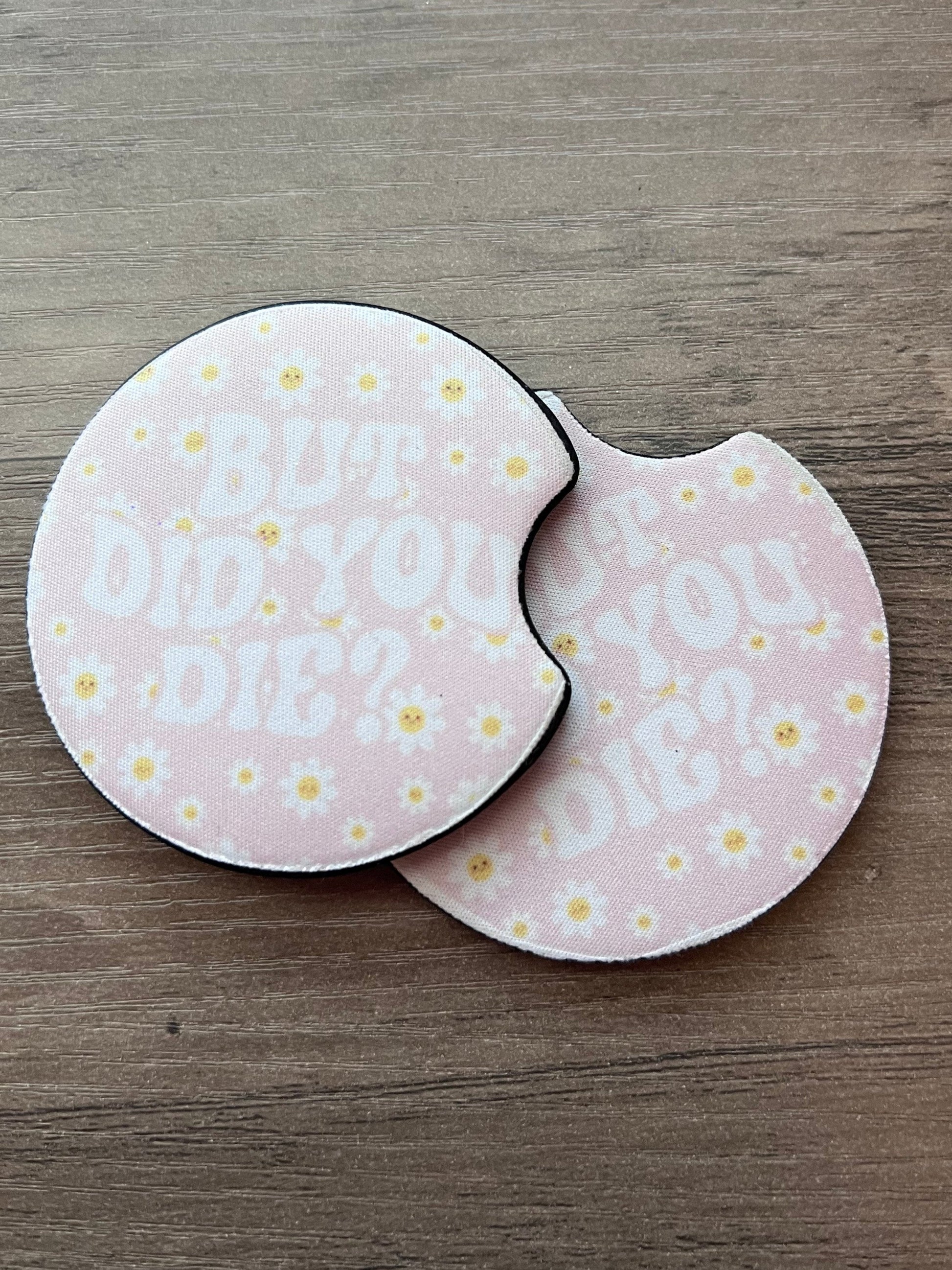 This set of two car coasters is an adorable accessory that can liven up your car's interior. They are designed to fit most standard-size cup holders and make it easier to clean. They have an anti-slip bottom, are soft and bendable, and are easy to remove with a thumb hole. Car coasters are cute car accessories that make unique gifts for your friends, mother, girlfriend, teacher, daughter, or even yourself.