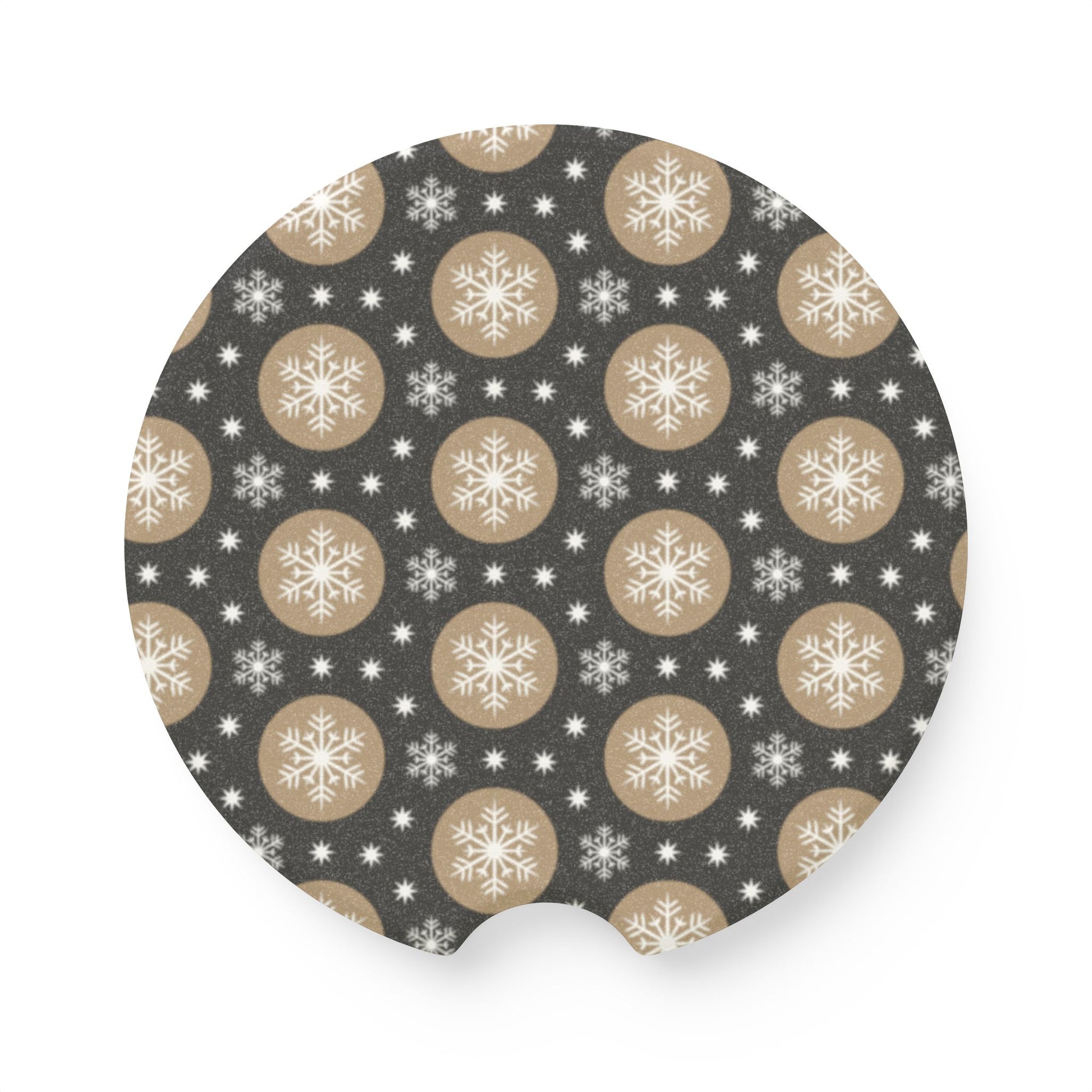 Christmas Car Coaster - Holiday Snowflake Soapstone Cup Holder Insert, Festive Auto Accessory, Winter Drink Mat, Seasonal Vehicle Decor,