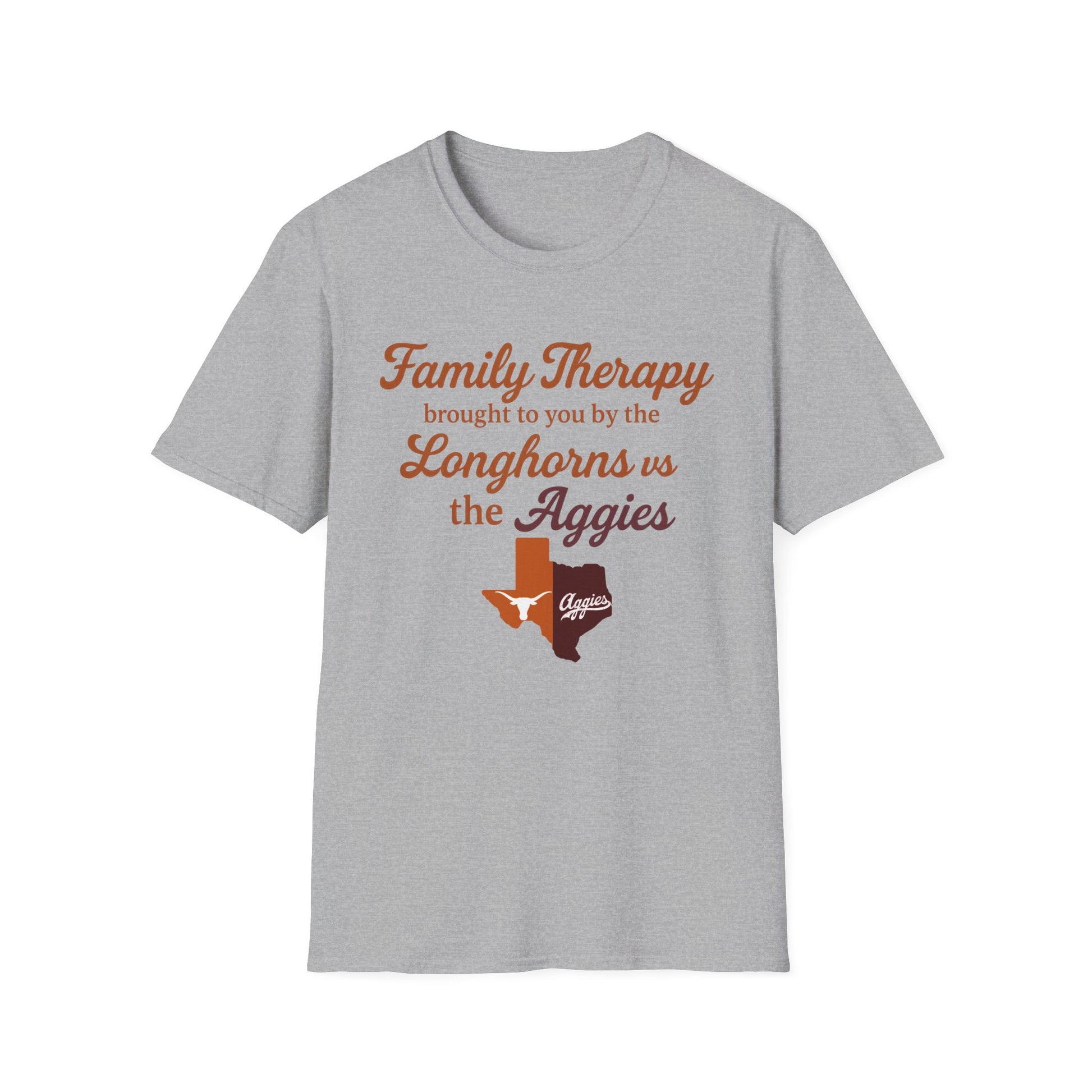 Family Therapy: Longhorns vs. Aggies Tee – Texas Rivalry Game Day Shirt