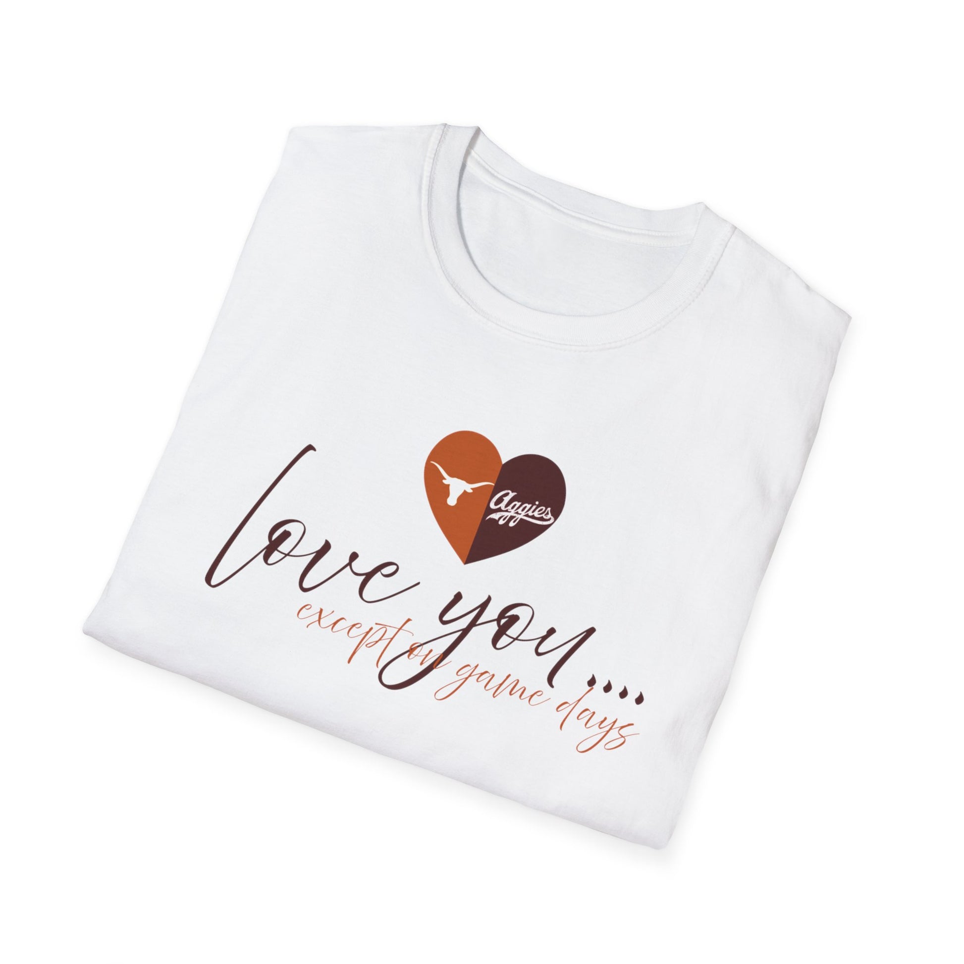 Love You… Except on Game Days Tee – Longhorns vs Aggies House Divided Shirt, Game Day Gear