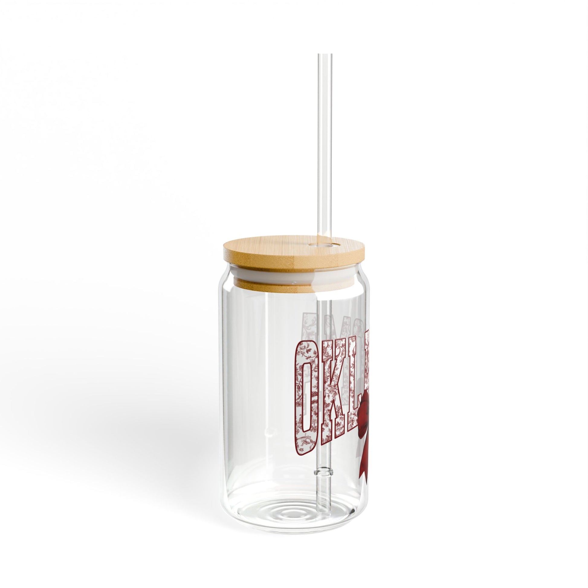 Sip in style with this adorable 16 oz glass tumbler featuring a charming floral Oklahoma Sooners design with a cute bow. Perfect for showing off your Sonner pride with a feminine twist, this tumbler is great for iced coffee, water, tea, or your favorite game-day drink.
