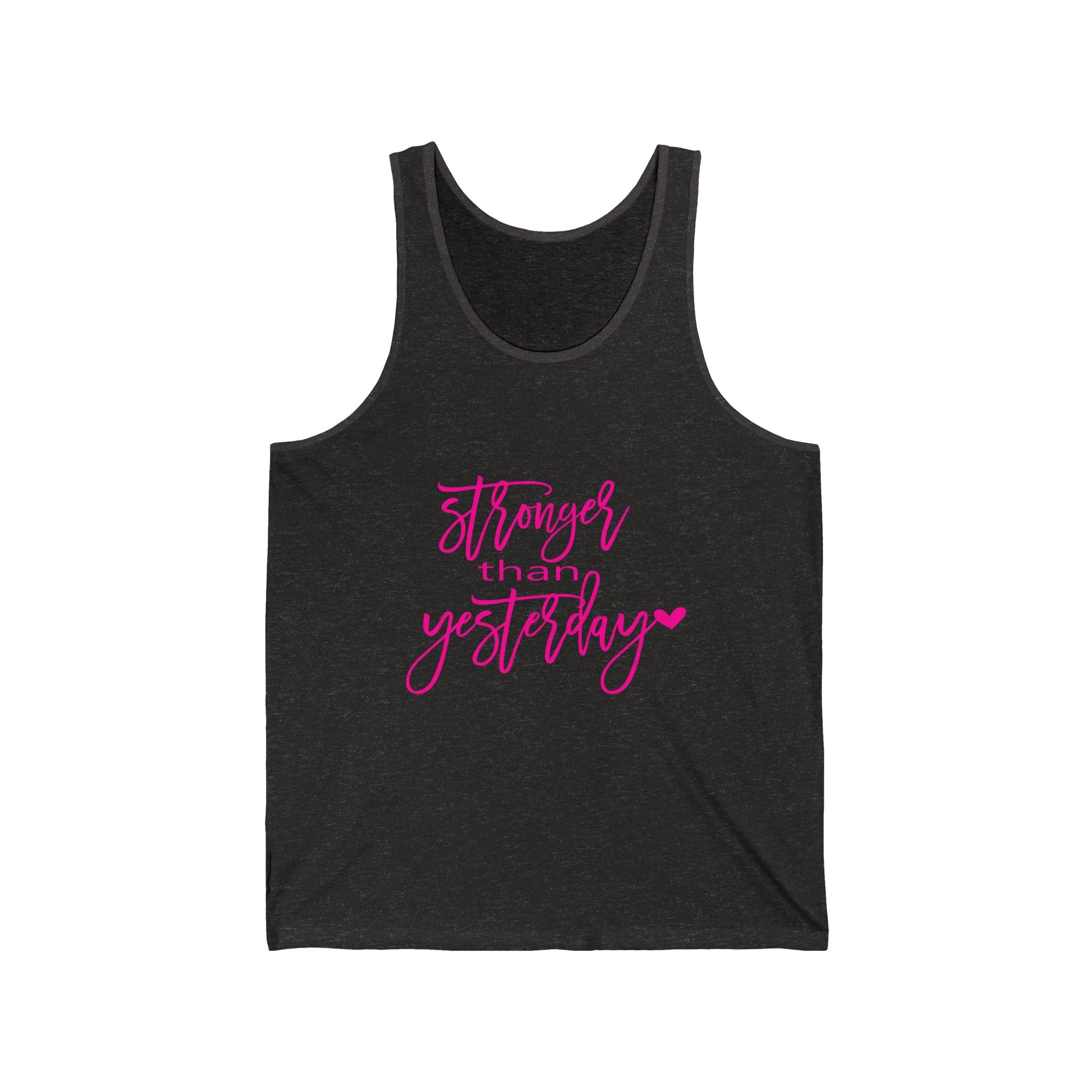 Stronger Than Yesterday Unisex Tank Top - Motivational Gym Wear, Fitness Apparel, Workout Shirt, Summer Essential, Gift