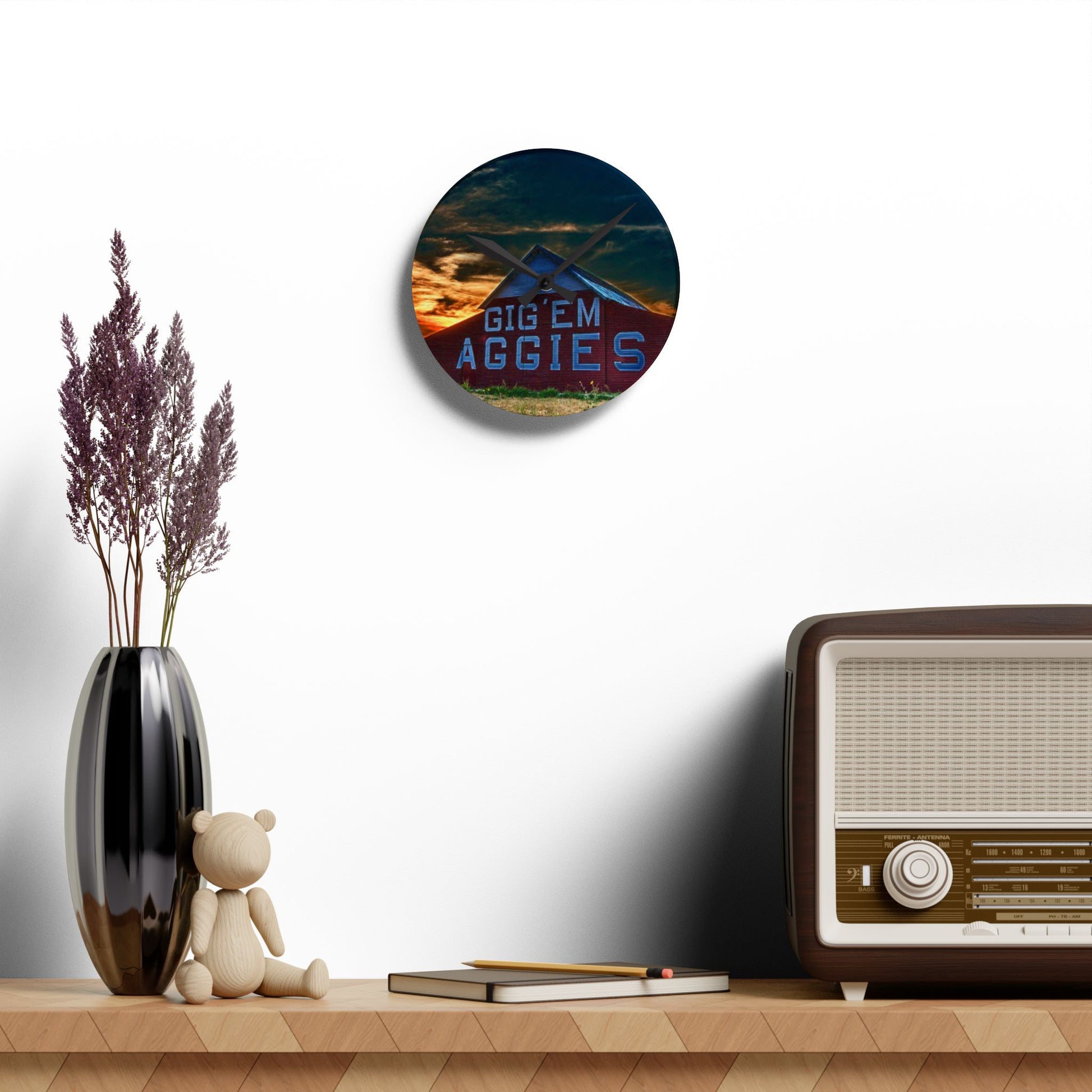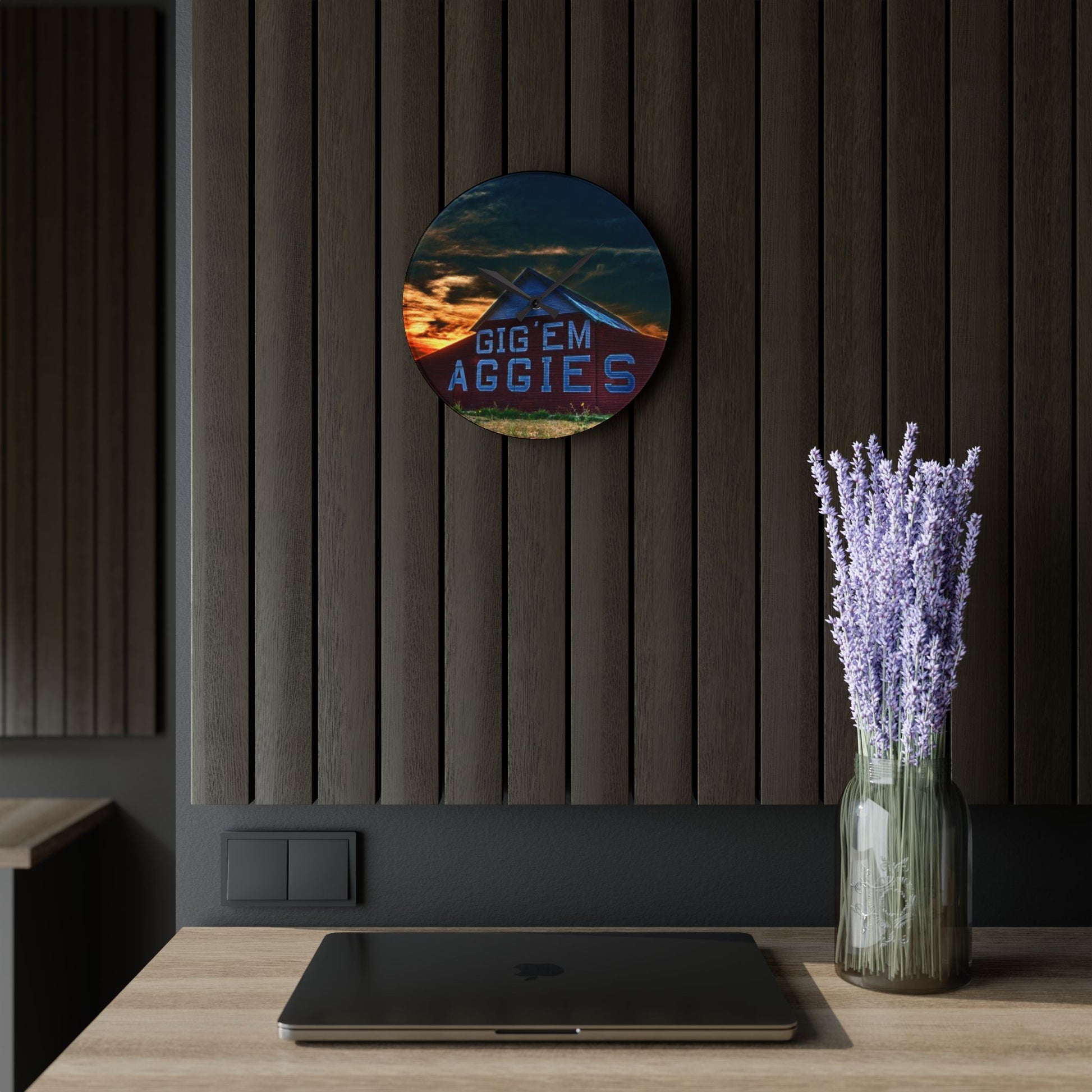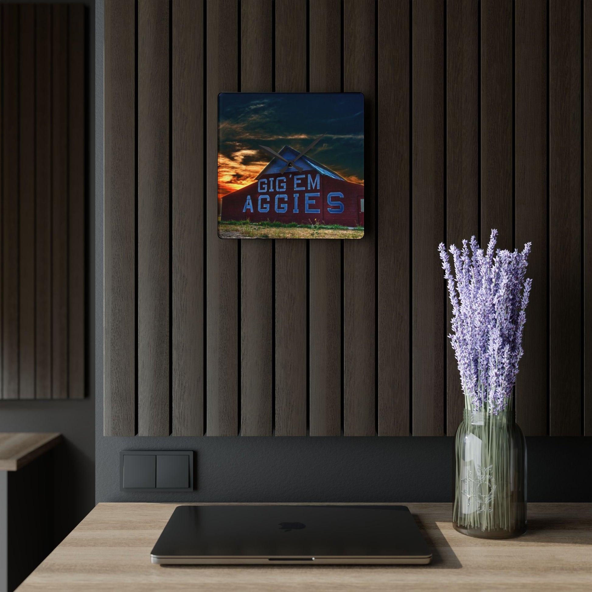 Aggie Barn Sunset Wall Clock | Acrylic Farmhouse Clock | Texas Sunset Décor | Gift for Aggie Fans, Dorm Decor