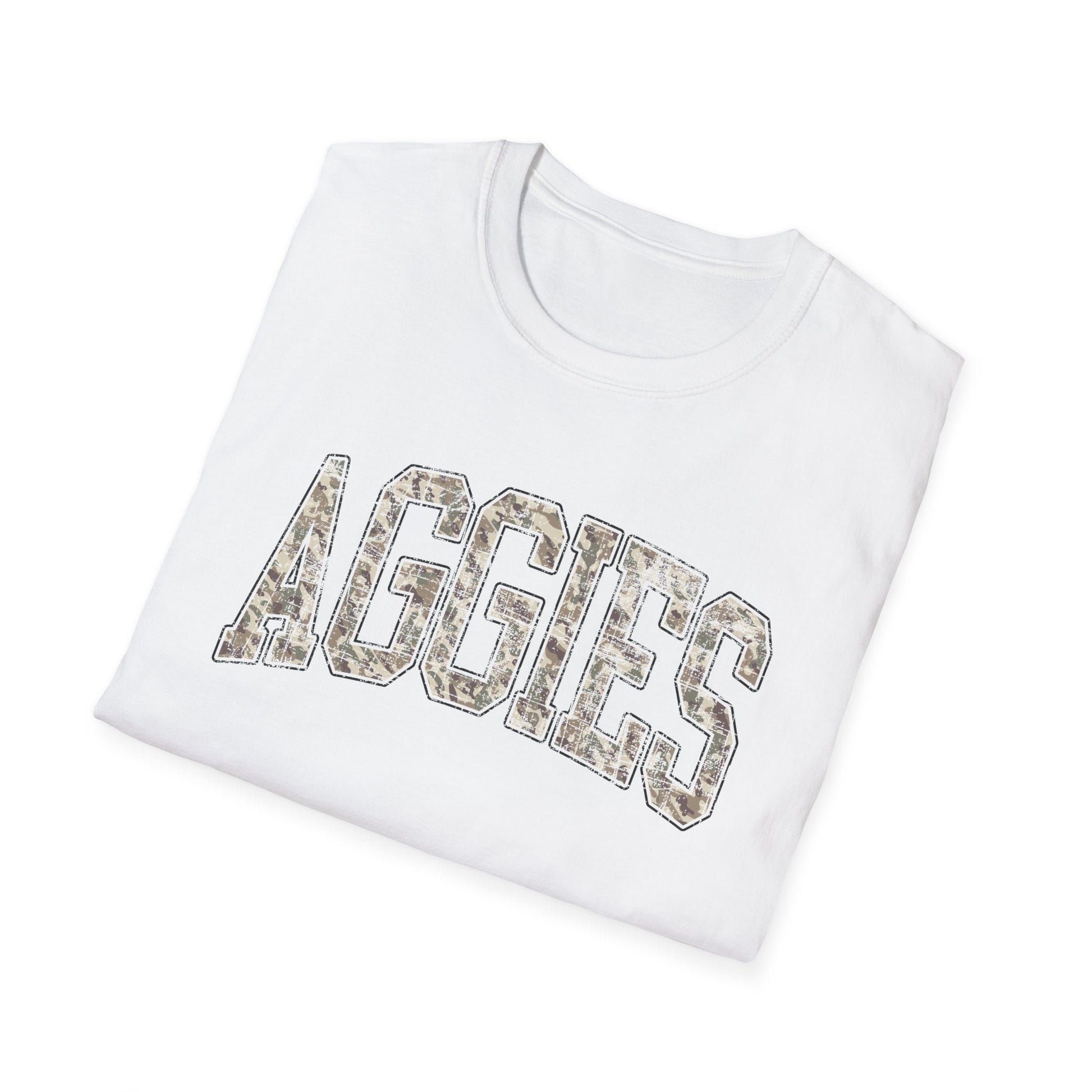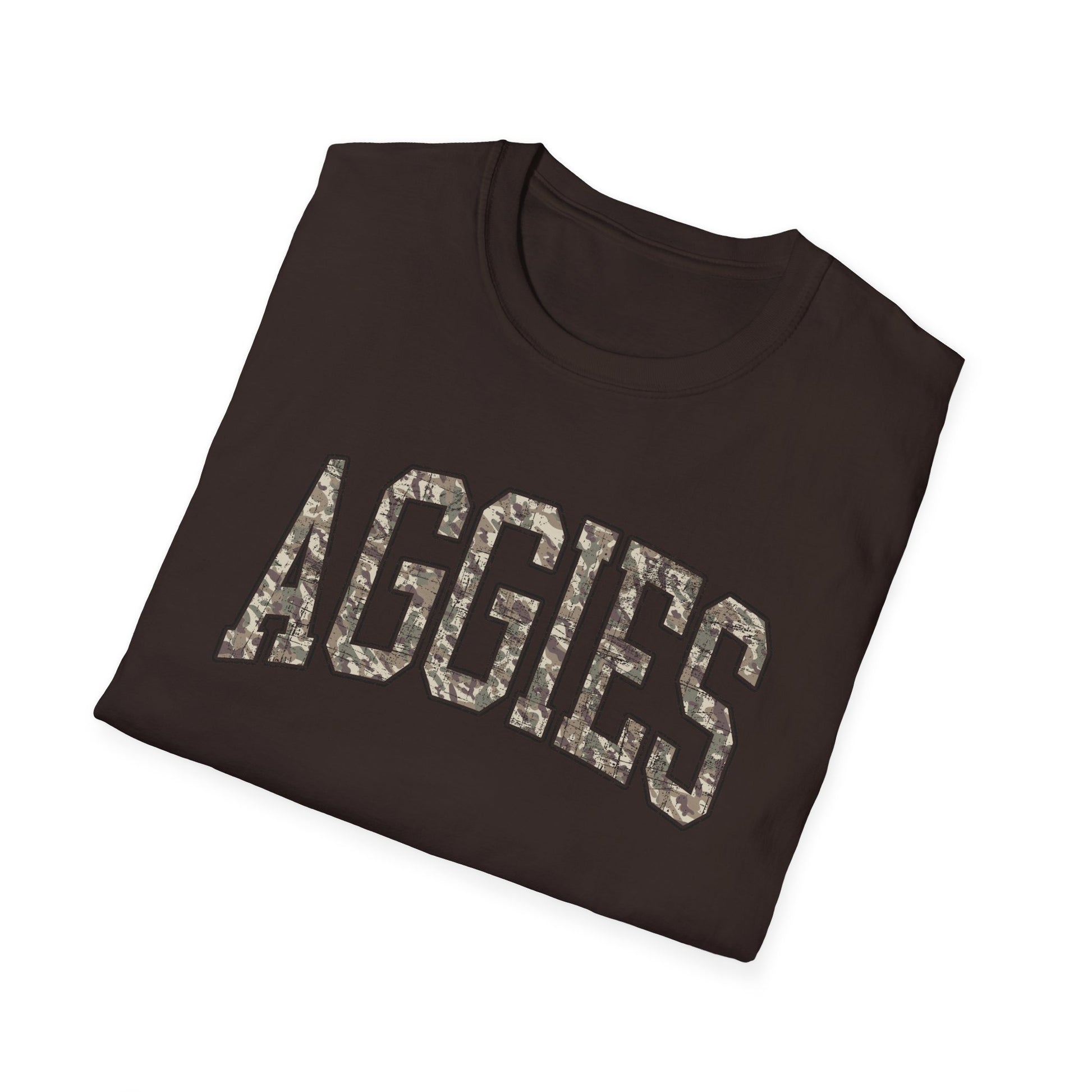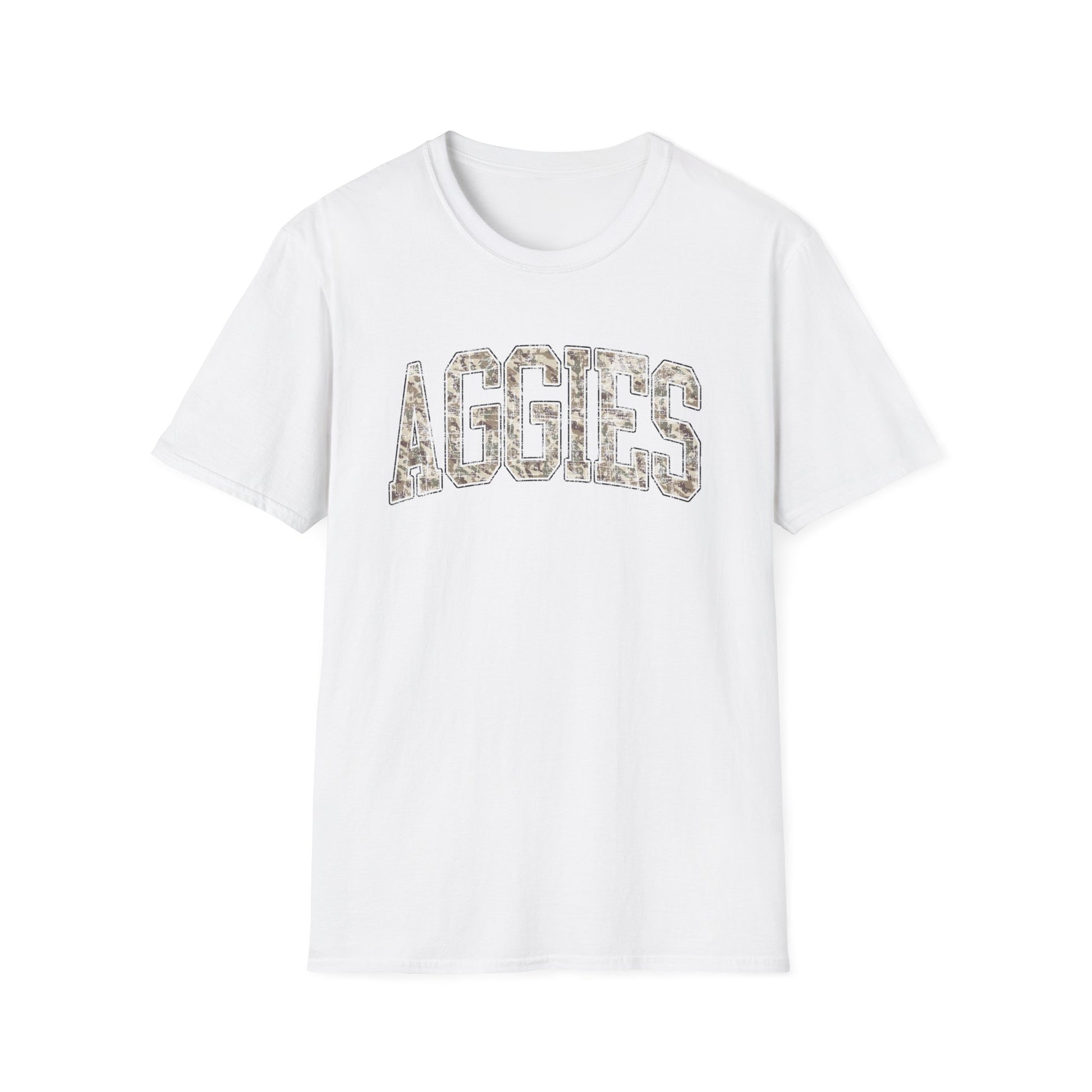 Aggies Camo SoftStyle T-Shirt | Distressed Hunting Style | Maroon Game Day Apparel | Aggies T-Shirt