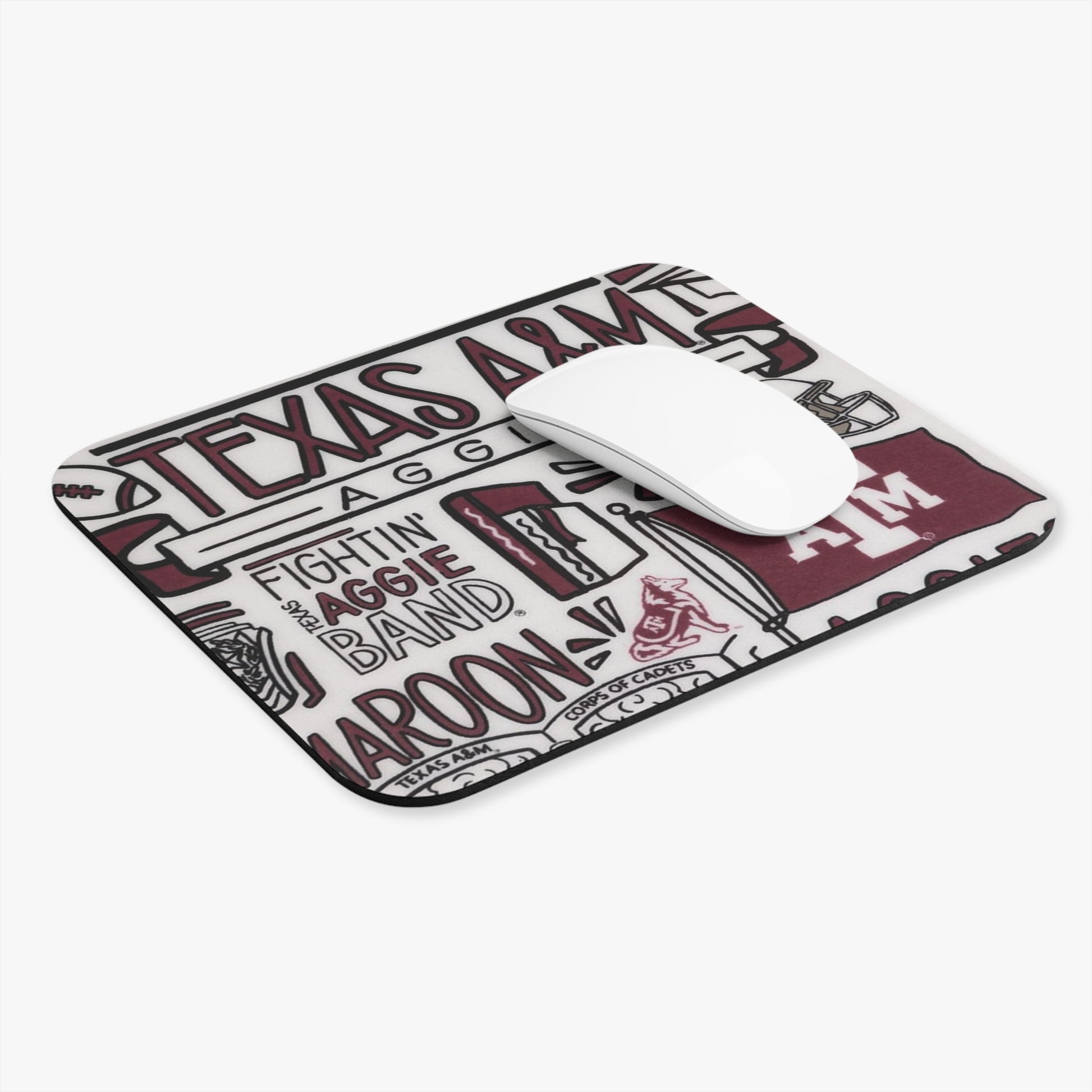 Add a burst of Aggie spirit to your workspace with this Texas A&M–inspired doodle mouse pad. Featuring iconic maroon graphics, campus symbols, and game-day elements, this fun design instantly brightens your desk while keeping your mouse gliding smoothly.