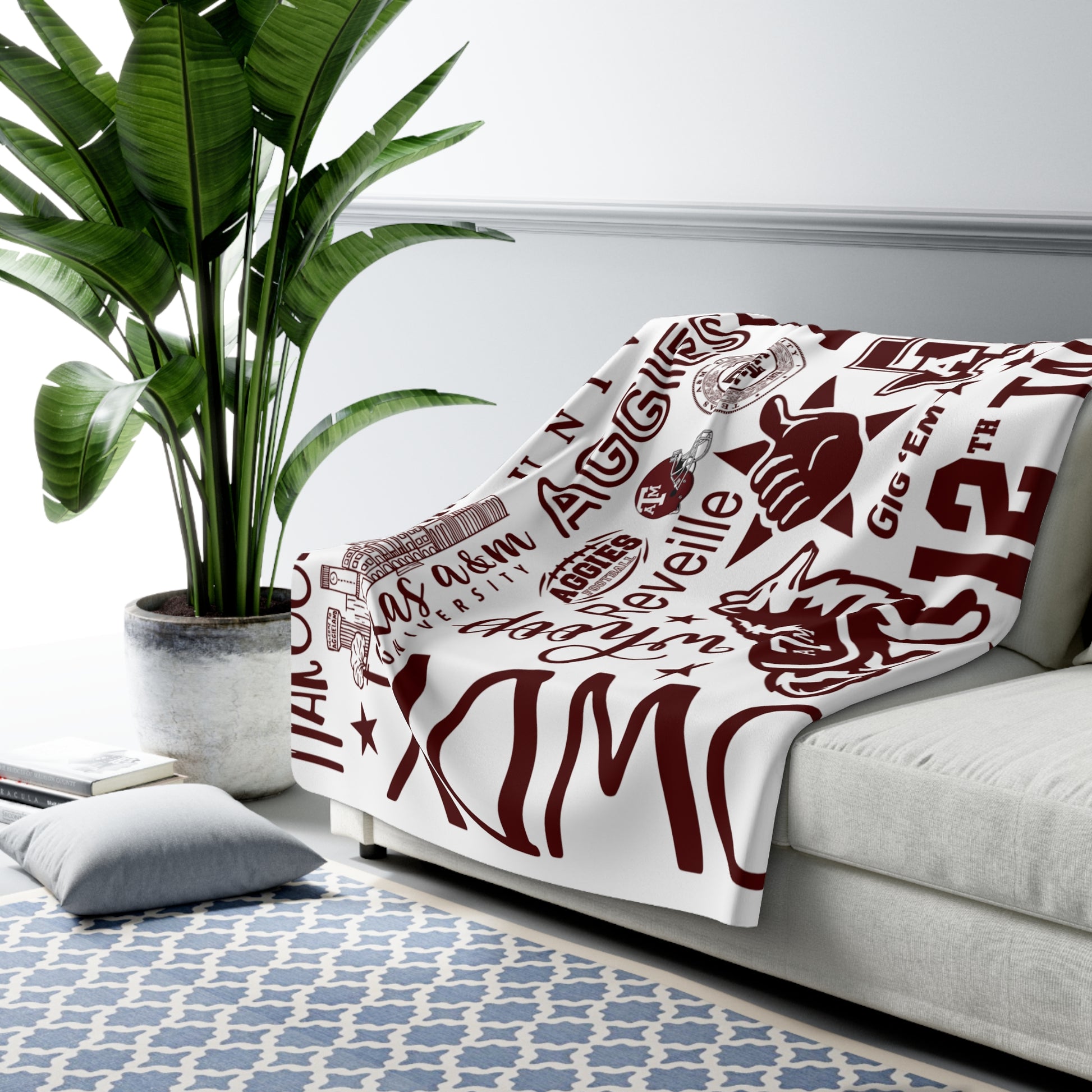 Aggies Sherpa Fleece Blanket, Cozy Throw for Home, Gift for Texas Fans, Texas Blanket, Dorm Accessory