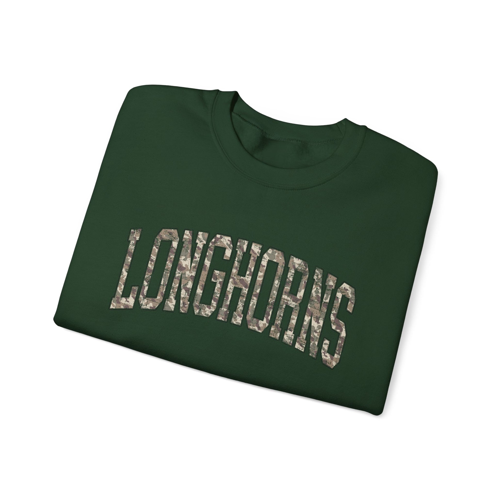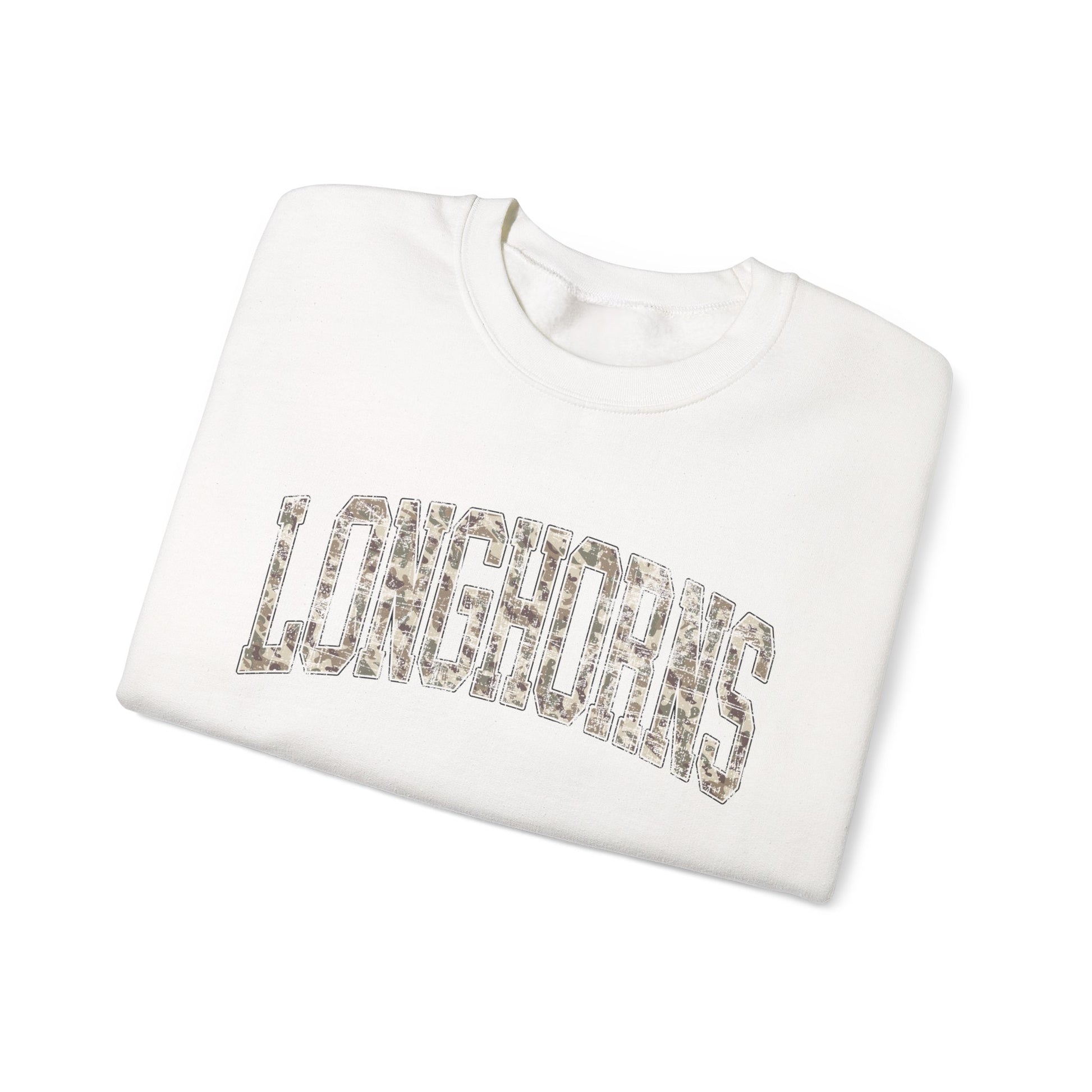 Longhorns Camo Crewneck Sweatshirt | Distressed Hunting Style | Game Day Apparel