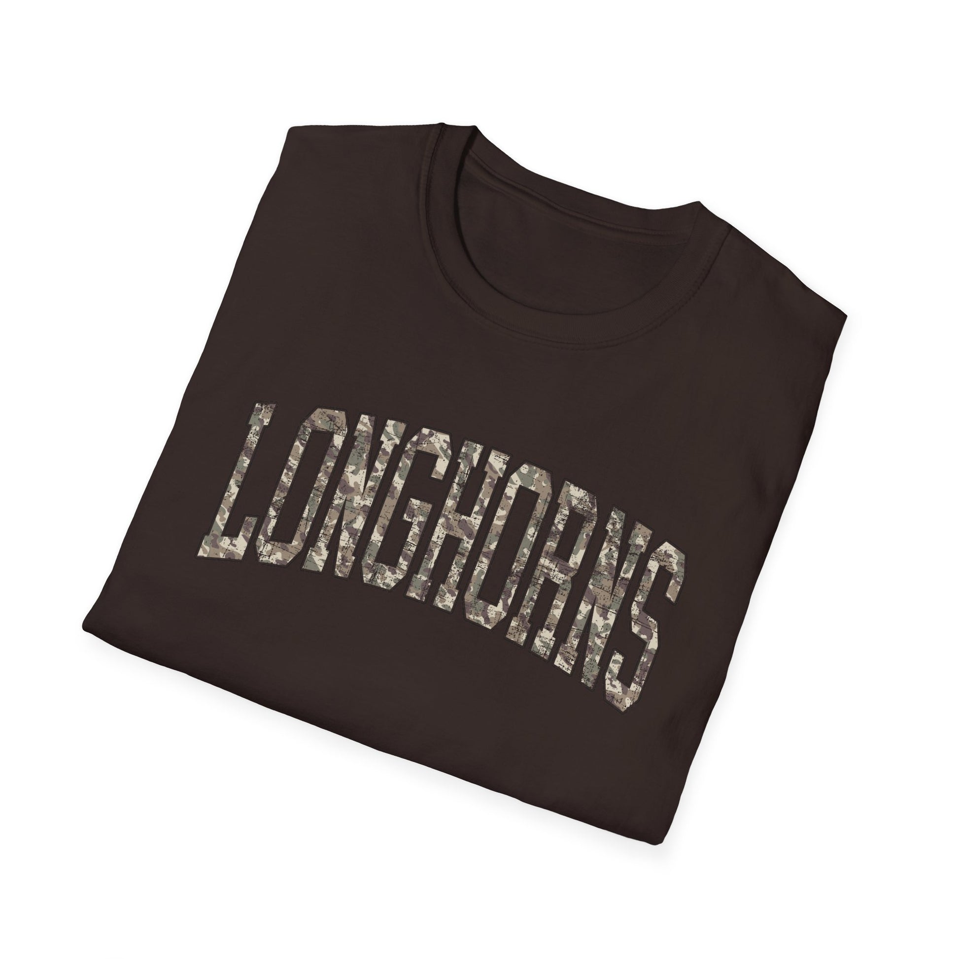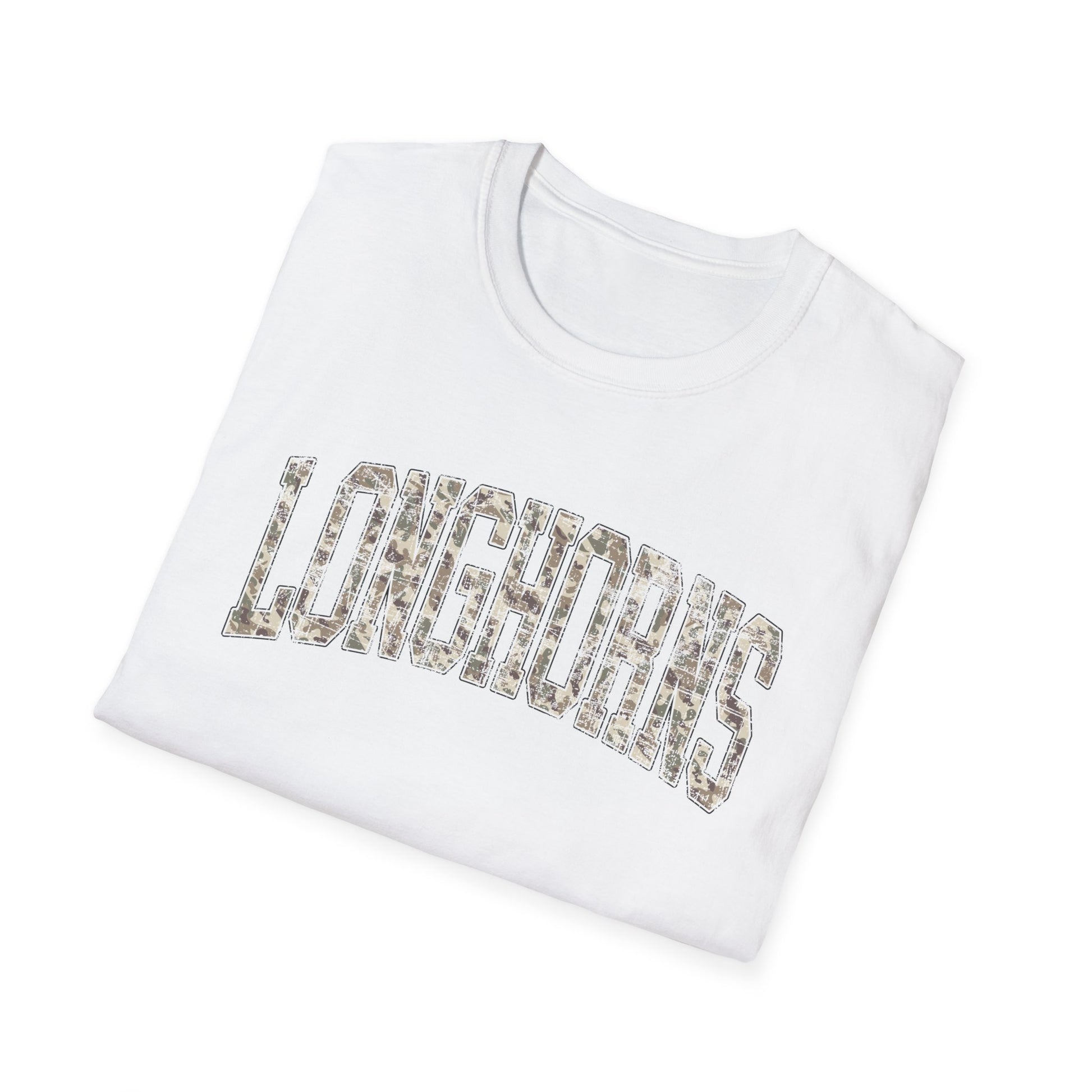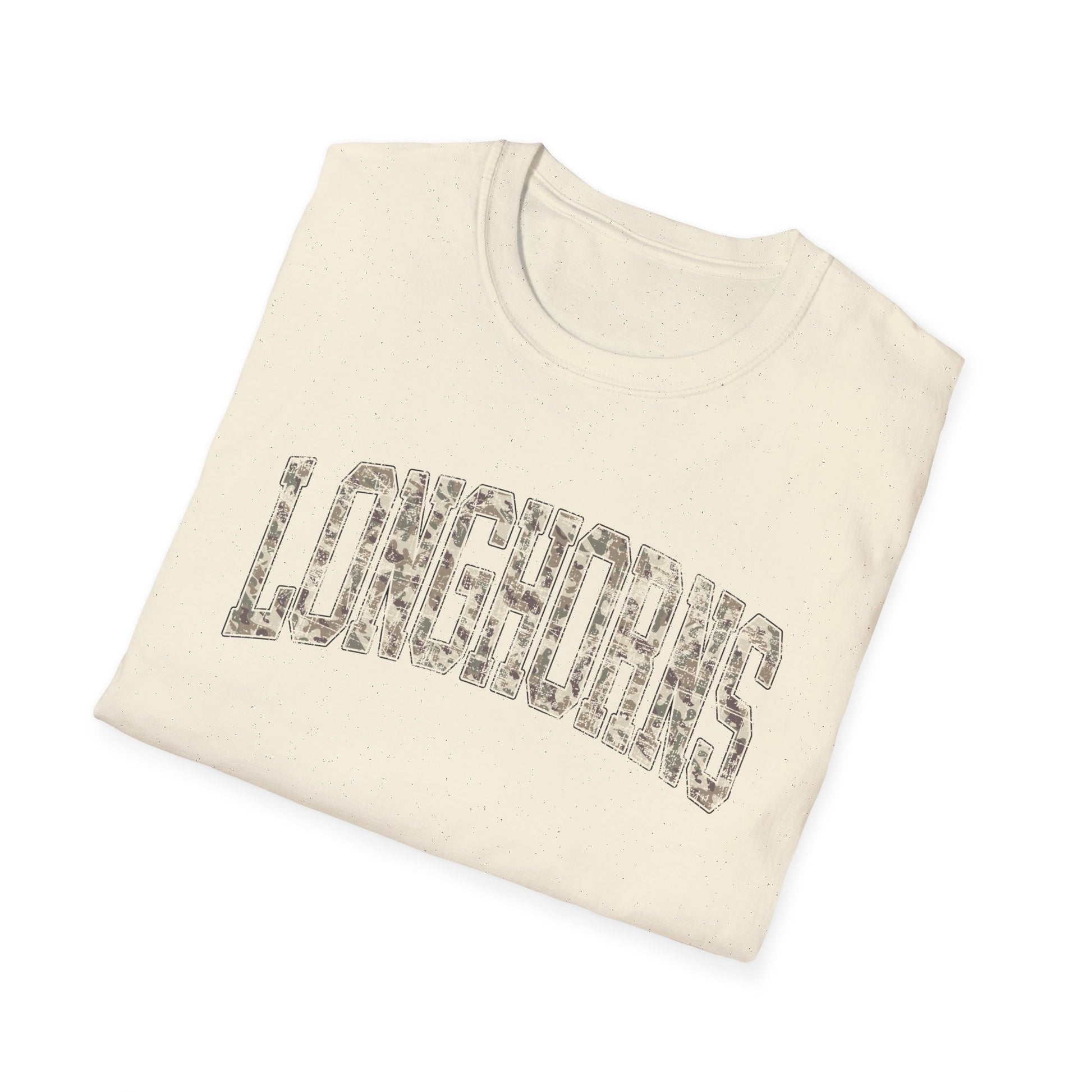 Longhorns Camo Softstyle T-Shirt | Distressed Hunting Style | Texas Game Day Apparel