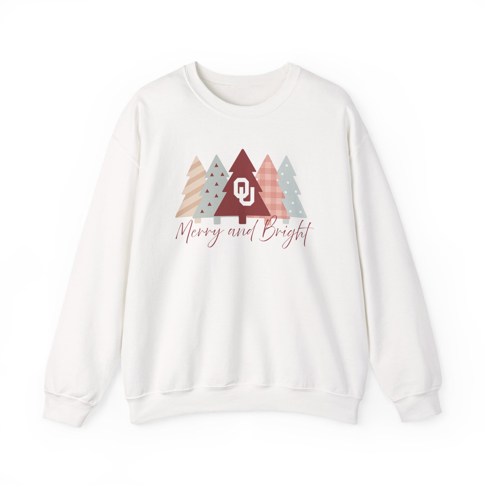 University of Oklahoma Holiday Sweatshirt - Merry and Bright Design, Festive Apparel, Christmas Gift, Sooners, Boomer Sooner Christmas