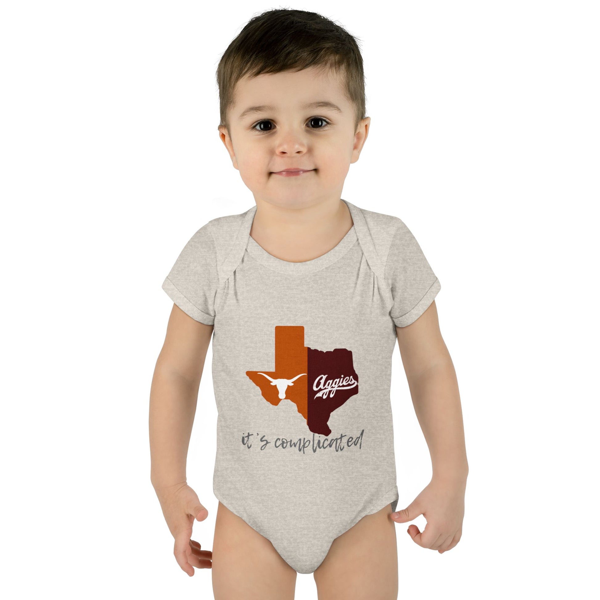 “It’s Complicated” Longhorns vs Aggies Baby Bodysuit – House Divided Infant One-Piece